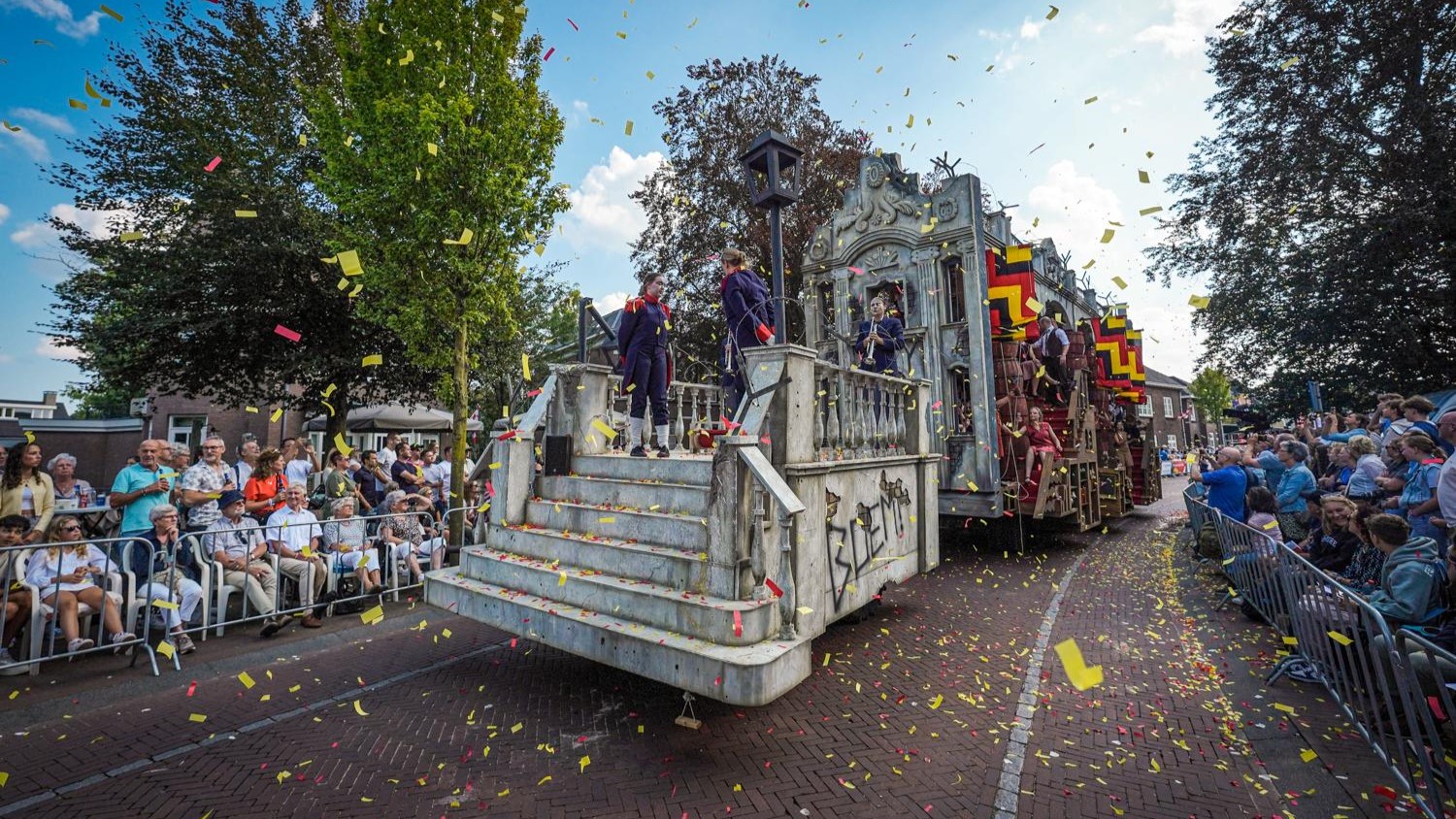De 𝐛𝐫𝐚𝐬𝐩𝐚𝐫𝐭𝐢𝐣𝐞𝐧 zijn verbeeld als een ‘draak van een carnaval’. Ze steken de draak met de machthebbers en dit refereert ook naar de bijnaam van Den Bosch: de Moerasdraak.
